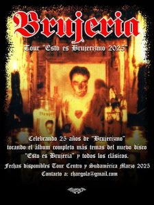 La agrupación, liderada por Juan Brujo, regresará con esta gira para también homenajear a Pinche Peach, histórico miembro de Brujería que falleció hace tan solo semanas. Recordemos que entre sus líneas han contado con destacado músicos, entre ellos Jeff Walker “El Cynico” (Carcass), Shane Embury “El Hongo” (Napalm Death) y el chileno Anton Reisseneger “El Criminal” (Pentagram/Criminal).