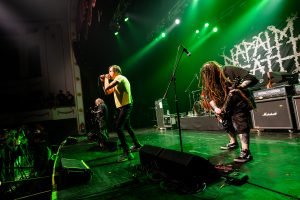 Clásicos como “Scum”, del disco debut del mismo nombre, emocionan a la audiencia, que también ovaciona a “You Suffer”, la canción más corta de la historia, que es capaz de hacer gritar a todos con su segundo de duración. Increíble. Hacia la parte final, luego de “Dead”, Barney pronuncia algunas palabras en español, como ha intentado durante otras partes del show, y anuncia una canción “antifascista”. El teatro parece venirse abajo, porque sabemos que sonará el cover de Dead Kennedys “Nazi Punk Fuck Off”, que se vive con el alma en la cancha y en cada rincón del recinto. Se anuncian los últimos temas, con “Instinct Of Survival” desplegando mucha fuerza y desatando el mosh una vez más, dejando todo servido para finalizar la hecatombe sonora con “Contemptuous”, volviendo en el tiempo hacia 1992 y hacia los recuerdos que reviven en una noche feroz.