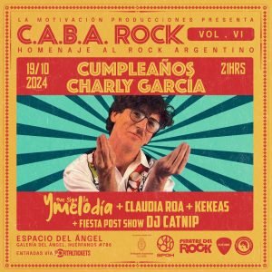 Las 73 primaveras del ícono del rock argentino Charly García se celebrarán en grande. Un impactante show en vivo repasará la carrera del ídolo, pasando por Serú Girán, Sui Generis, La Máquina de hacer Pájaros, y por supuesto su imperecedera etapa solista. La banda “Y que siga la melodía”, reconocida en la escena por su reinterpretación y apego a la obra de Charly, junto con la eximia pianista Claudia Roa, y el saxo de Keko Hermosilla,serán quienes tengan la misión de representar las inconfundibles sensaciones que provoca Charly. El ultrabailable irá por parte de DJ Catnip. Una noche inolvidable que incluye rock, psicodelia, nostalgia, mucho baile, brillo show.