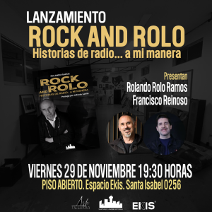 El equipo editorial desea invitarles al lanzamiento del libro Rock and Rolo. Historias de radio… a mi manera, del comunicador Rolando Rolo Ramos, con prólogo de Alfredo Lewin. El libro será lanzado este viernes 29 de noviembre, a las 19:30 hrs., en Piso Abierto (Espacio Ekis, segundo piso), ubicado en Santa Isabel 0256, metro Santa Isabel.