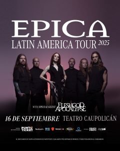 Durante este recorrido, Epica estará acompañada de sus invitados especiales Fleshgod Apocalypse, destacada banda italiana de death metal técnico y sinfónico con más de 17 años de trayectoria.