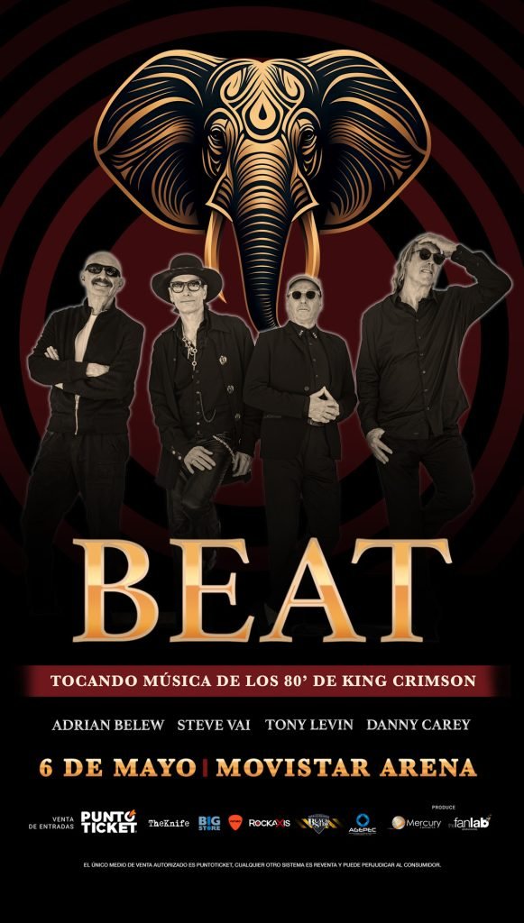¡Un espectáculo imperdible! En su visita a Chile, BEAT ofrecerá una experiencia única al revivir la música de King Crimson de los años 80s, con la maestría de sus integrantes Adrian Belew: guitarrista y vocalista conocido por su trabajo con King Crimson y David Bowie; Tony Levin, bajista destacado por sus colaboraciones con Peter Gabriel y King Crimson; Steve Vai, virtuoso guitarrista que ha trabajado inclusive con Frank Zappa y su carrera solista y Danny Carey, baterista de Tool reconocido por su técnica y precisión.Las entradas estarán disponibles a través de PuntoTicket. La preventa comenzará este viernes 20 a las 11:00 AM con un 20% de descuento en todos los medios de pago, hasta agotar el stock correspondiente al 30% de la capacidad total.