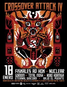 Un explosivo panorama para el próximo sábado 18 de enero será el que se llevará a cabo en Arena Recoleta para la cuarta versión del festival independiente “Crossover Attack” con Fiskales Ad-Hok y Nuclear encabezando el cartel de bandas que unirán en un mismo escenario estilos como el punk, el metal y el hardcore.