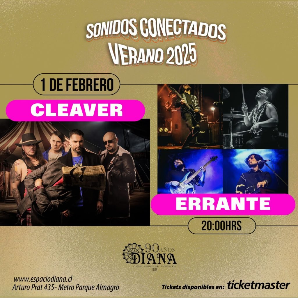 Entradas a través de Ticketmaster https://www.ticketmaster.cl/event/sonidos-conectados-verano-2025-errante-y-cleaver-en-espacio-diana