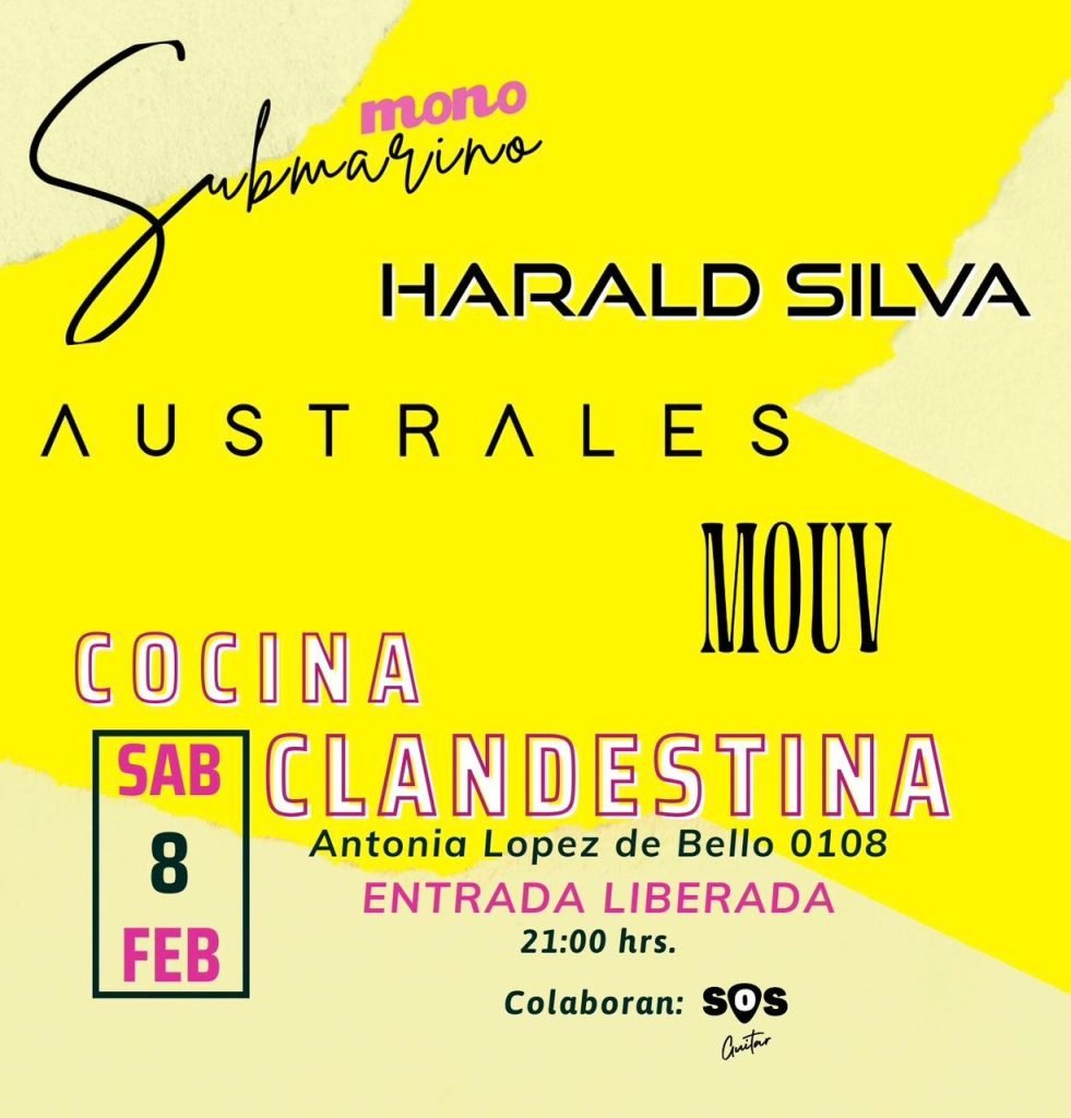 La entrada es liberada y contará con la presencia de Mono Submarino, quienes se encuentran en gira por Chile, también estará presente Australes con su disco “Viajes Temporales”, y Mouv, quienes estrenarán su nuevo single “Laura”. También habrá venta de merch y discos.