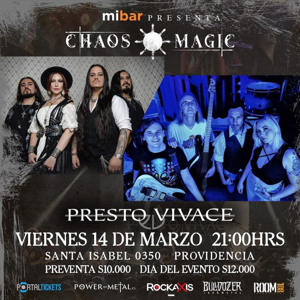 Por su parte, son tres los discos que avalan la trayectoria de la agrupación nacional Chaos Magic quienes cuentan con una inconfundible mezcla de voces melódicas, orquestaciones grandiosas y una energía arrolladora. con un setlist que incluirá material nunca antes ejecutado.