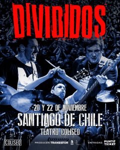 Divididos regresa a nuestro país con dos históricas presentaciones en Teatro Coliseo. Este 20 y 22 de noviembre nos encontraremos con la legendaria banda argentina en Santiago para celebrar su legado en dos íntimas presentaciones con capacidad limitada de asistentes.