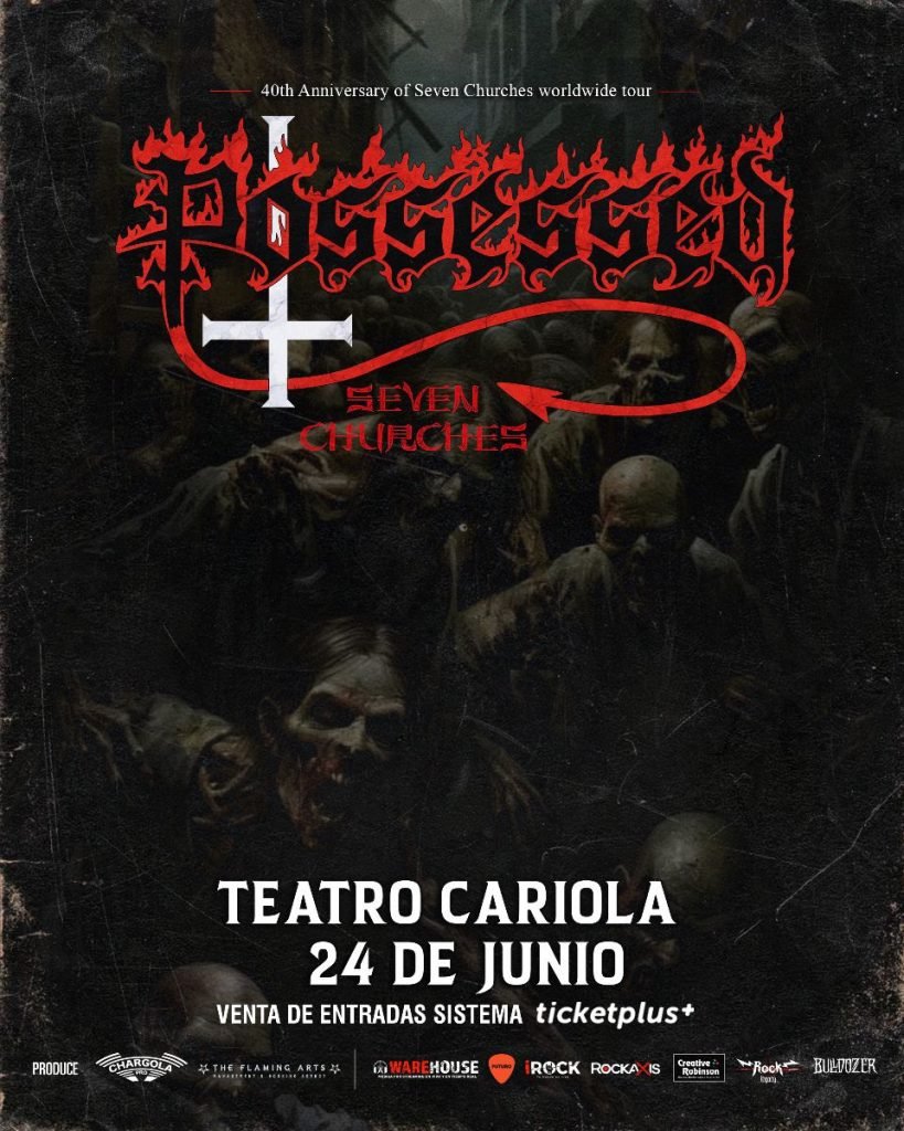 ¡Así es! Possessed, agrupación pionera en el death metal, regresará a nuestro país en el marco de una nueva gira latinoamericana que pasará también por países como Honduras, Costa Rica, Brasil, Argentina y México. Pero esta ocasión será muy especial, ya que volverán a la región para celebrar nada menos que los 40 años del emblemático “Seven Churches”, álbum debut de los estadounidenses.
