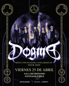 Dogma nos volverá a visitar con su gira “Kneel for Pleasure Latin American Tour 2025” este viernes 25 de abril del 2025 a las 21:00 hrs en la Sala Metrónomo (Ernesto Pinto Lagarrigue 179, Recoleta, Santiago). Las entradas las puedes encontrar en https://www.passline.com/eventos/dogma-metronomo