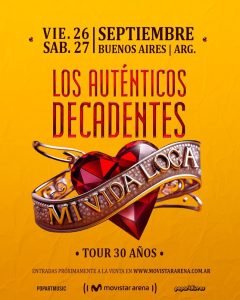 Tras su espectacular paso por el Quilmes Rock, Los Auténticos Decadentes anuncian su regreso al Movistar Arena de Buenos Aires para celebrar en grande los 30 años de una verdadera joya del rock latino: Mi vida loca. El evento, que será leyenda, tiene doble cita y formato: