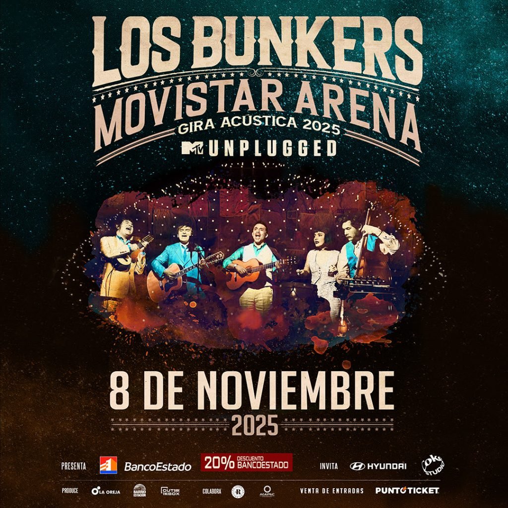 Los Bunkers, la banda chilena más importante y convocante del país, sigue marcando hitos con su “Gira Acústica 2025”, con 25 shows sold out en su residencia en el Teatro Nescafé de las Artes de Santiago, ahora la agrupación agrega un show masivo en el Movistar Arena, agendado para el sábado 08 de noviembre.