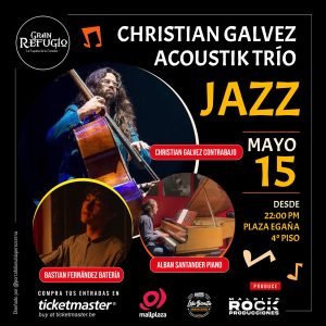 El próximo jueves 15 de mayo, el escenario de Gran Refugio en Mall Plaza Egaña se vestirá de gala para recibir a uno de los grandes referentes del jazz nacional, el contrabajista Christian Gálvez, quien se presentará junto a su destacado proyecto Acoustik Trío en una velada imperdible para los amantes del género. Las entradas ya están disponibles a través de Ticketmaster.