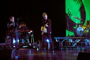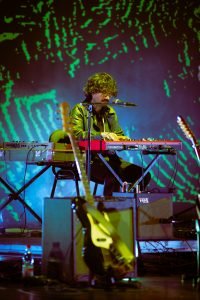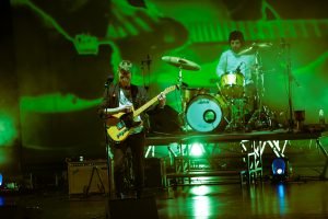 En un escenario increíble, destacaron las visuales proyectadas al fondo con texturas e imágenes que recordaban los noventa sin estancarse en ellos.