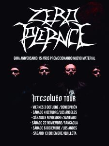 Los Quillotanos de Zero Tolerance comenzaron el segundo semestre del 2025 con todo,primero causando revuelo con su single “Prontuario” el cual fue lanzado el 8 de agosto y se encuentra disponible en todas las plataformas de streaming,luego de eso la banda dió a conocer el nombre y Arte de su nuevo material, titulado “Irresoluto” el cual  fue desarrollado por “Hugruna Arte” quien también realizó el arte de su single “Prontuario“,en producción este  trabajo estuvo a cargo de Daniel Escobar,actual guitarrista de la agrupación. Así es como la banda conformada por Daniel Escobar en guitarra, Ignacio Solar en Bajo, Marcelo Sepúlveda en voz y Pablo López en batería dió a a conocer sus fechas para este 2025, el cual ha sido llamado “Irresoluto tour ” y contempla 6 fechas por diversas ciudades de Chile, las fechas de Zero Tolerance son: