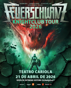 Con ya 13 discos de estudio que abordan temáticas relacionadas a fantasía, cultura medieval, mitología nórdica, humor, fiesta e incluso sexo; los alemanes llegarán a tierras chilenas para hacer un repaso por sus más de dos décadas de trayectoria, poniendo en la palestra además el lanzamiento de “Knightclub”, su más reciente trabajo discográfico lanzado hace tan solo unos meses. Así que si eres amante del folk metal, la cultura medieval y lo cómico, no te puedes perder la tremenda fiesta que se va a armar el próximo 21 de abril en el Teatro Cariola junto a Feuerschwanz.