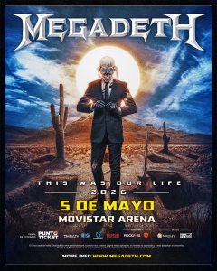 Este concierto forma parte de la gira mundial “This Was Our Life”, una travesía de despedida que ha llevado a Megadeth a incendiar escenarios en todos los rincones del planeta, reafirmando su estatus como una de las bandas más poderosas e influyentes del thrash metal. Será la última oportunidad para que los fanáticos chilenos vivan la furia y el virtuosismo de Dave Mustaine y su legado sobre el escenario, en una noche que promete ser épica, cargada de historia, energía y la intensidad inconfundible de Megadeth.