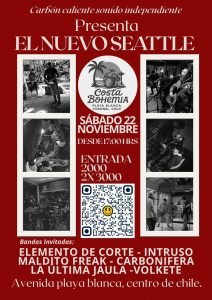 Y para coronar este ciclo, Elemento de Corte sube al escenario el sábado 22 de noviembre en Costa Bohemia (Playa Blanca, Coronel), en un recital cargado de potencia y hermandad rockera. La fecha reunirá también a Intruso, Maldito Freak, Carbonífera, La Última Jaula y Volkete, bajo la producción de Carbón Caliente Sonido Independiente.