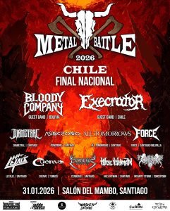 Nueve de las bandas más destacadas de la escena metalera nacional fueron seleccionadas para esta instancia crucial, donde se disputarán solo dos cupos para representar a Chile en la Final Regional Sudamericana de Metal Battle, que se llevará a cabo en Lima, Perú en el mes de febrero. Allí, los proyectos clasificados competirán frente a bandas de otros países del continente por el paso directo al legendario Wacken Open Air Alemania.