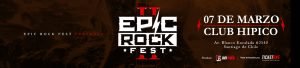 Epic Rock Fest se realizará el día 7 de Marzo en Club Hípico ubicado en Av. Blanco Encalada #2540, Santiago, Chile. En donde estarán presentes las bandas: Kabrónes!!!, Suicidal Tendencies, Madball, Tierra Santa, Fabio Lione, Hamlet y Slicer. Además habrá una Expo Tatoo, Food Trucks y un Epic Bar.