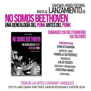 Lanzamiento del libro No somos Beethoven. Una genealogía del punk antes del punk, del autor Emilio Ramón (Santiago-Ander Editorial)