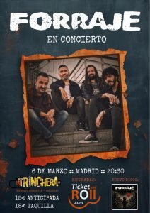 FORRAJE presentará su nuevo álbum el viernes 6 de marzo en Madrid, también estará presente el sábado 2 de mayo en el tercer día del festival EXTREMÚSIKA y el 29 de Agosto en el GRIMALROCK, en Cáceres.