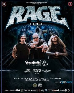 Rage, la histórica banda alemana de heavy/speed/power metal liderada por Peter “Peavy” Wagner, regresa este 24 de abril por tercera vez a Santiago para presentarse en LiveMusic RestoBar Onaciu, y lo hace 8 años después de su última visita al país. En este periodo, la banda ha editado cuatro discos de estudio, completando un total de 26 álbumes en su historia musical (27 si se considera el primer lanzamiento bajo el nombre de Avenger en 1985). Esta extensa discografía no solo da cuenta de su longevidad, sino también de su capacidad para adaptarse y mantenerse vigentes a través del tiempo.