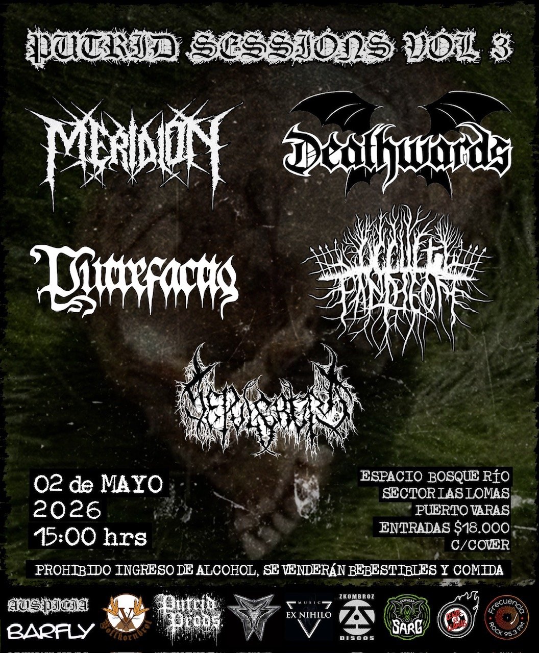Un cartel de cinco potentes bandas es lo que contempla la tercera versión de PUTRID SESSIONS, a realizarse el próximo sábado 2 de mayo en Puerto Varas, región de Los Lagos.