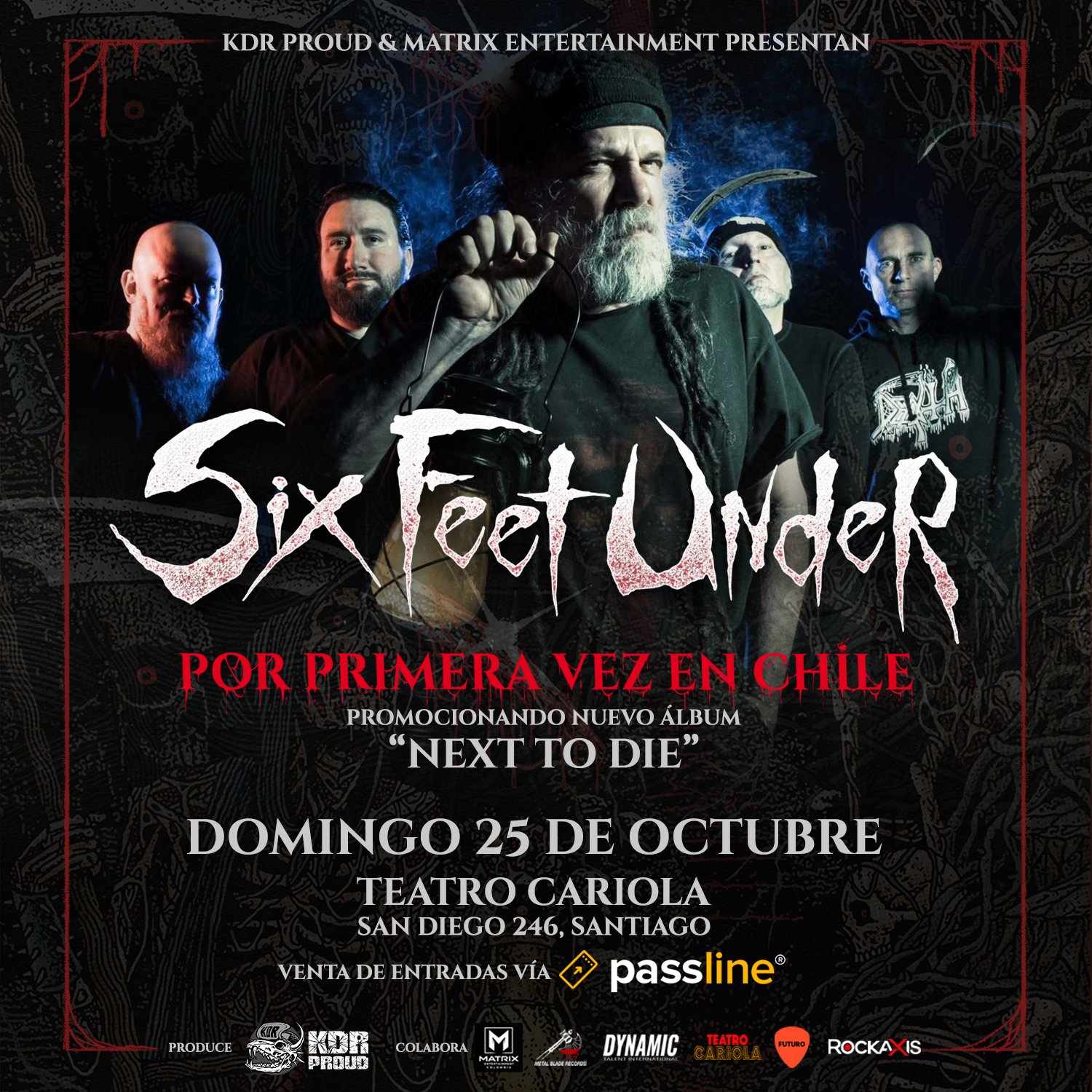 Las productoras KDR Proud y Matrix Entertainment anuncian el primer concierto en Chile de los íconos del Groove Death Metal: Six Feet Under.