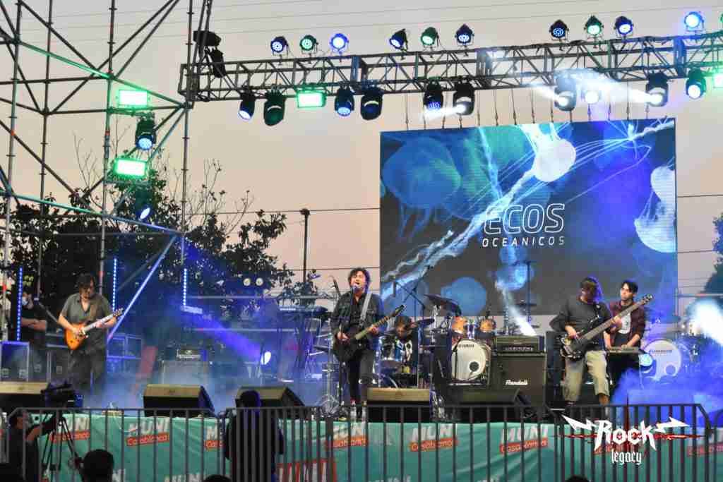 Luego fue el turno de los también casablanquinos Ecos Oceánicos, quienes en su onda más rockera alternativa, nos deleitaron con parte de sus éxitos como “Metros hacia el sol“, “Sufriendo en silencio” y “Huellas“, donde cerraron con broche de oro la presentación de las bandas locales, demostrando que Casablanca también tiene música de exportación y con un sincero aporte a la escena musical rockera de la mano de Gabriel Álvarez (guitarra y voz), Cristian Álvarez (batería), Fabián Arancibia (guitarra), Eduardo Silva (bajo) y Hugo Díaz (sintetizador).