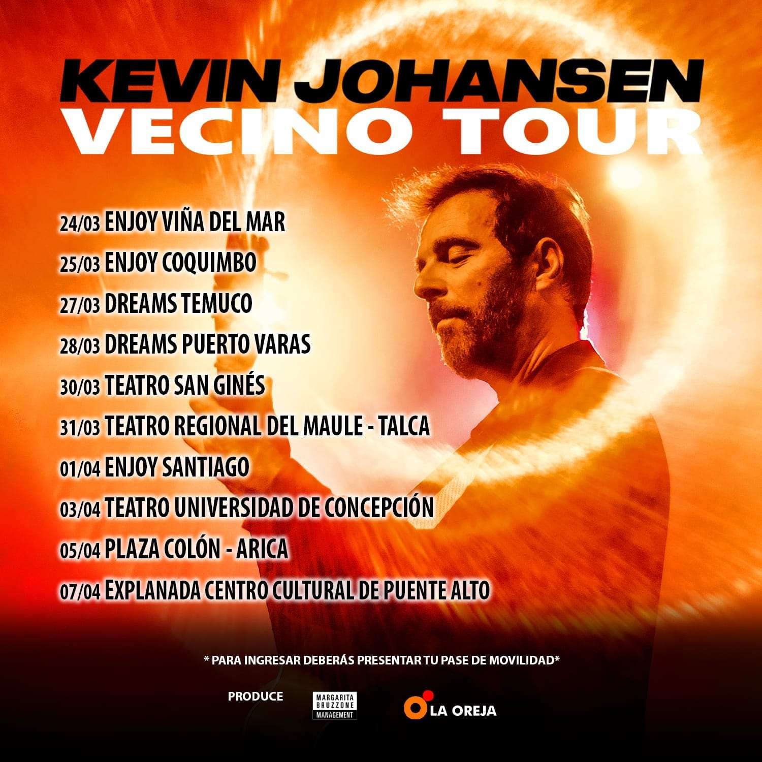 Kevin se encontrará con el público chileno en el mes de marzo con un formato guitarra y voz, luego de haber realizado varios conciertos virtuales en Buenos Aires.
