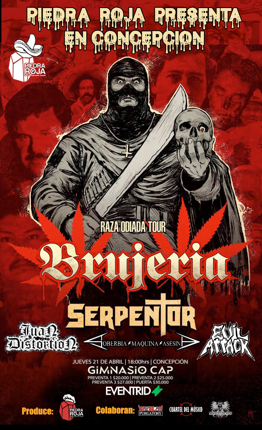 Brujería se presentará en Concepción el día jueves 21 de abril en el Gimnasio CAP para interpretar los temas de su segundo álbum lanzado en 1995 en conjunto a sus clásicos que los han llevado al reconocimiento internacional, reunión que tendrá la participación de las bandas nacionales Evil Attack, Juan Distortion, Soberbia Makina Asesina y los Argentinos de Serpentor.