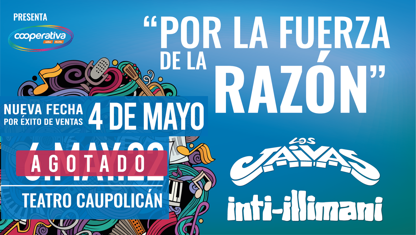 Cabe recordar que este espectáculo denominado “Por la Fuerza de la Razón”, se iba a realizar originalmente el 24 de octubre de 2020, sin embargo producto de la contingencia social y luego sanitaria se debió posponer hasta ahora. Por lo tanto, las entradas emitidas en aquella oportunidad, serán totalmente válidas para el concierto del 6 de mayo de 2022 en el Teatro Caupolicán.