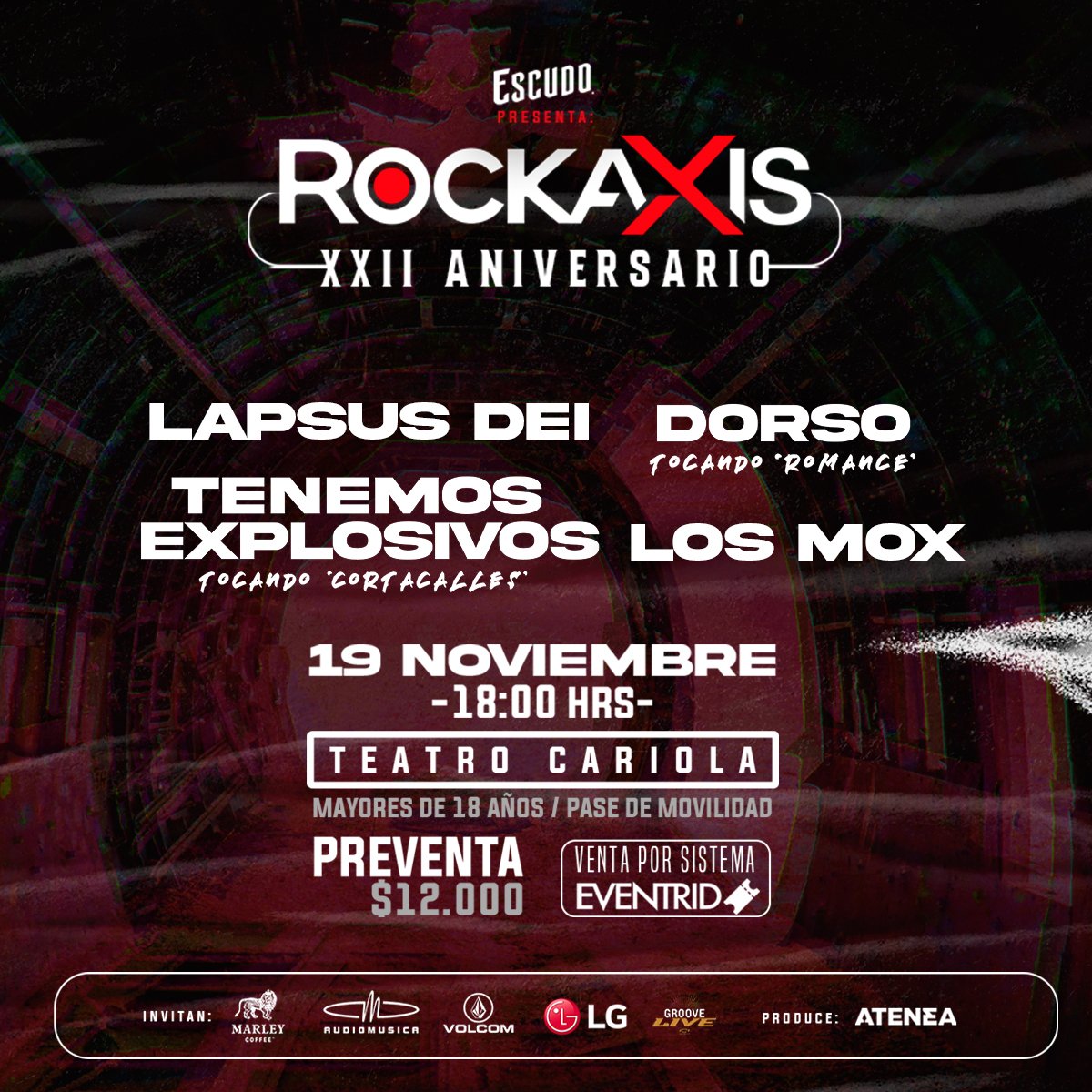Escudo Presenta: Aniversario Rockaxis 22 años junto a Lapsus Dei, Tenemos Explosivos, Los Mox y Dorso.