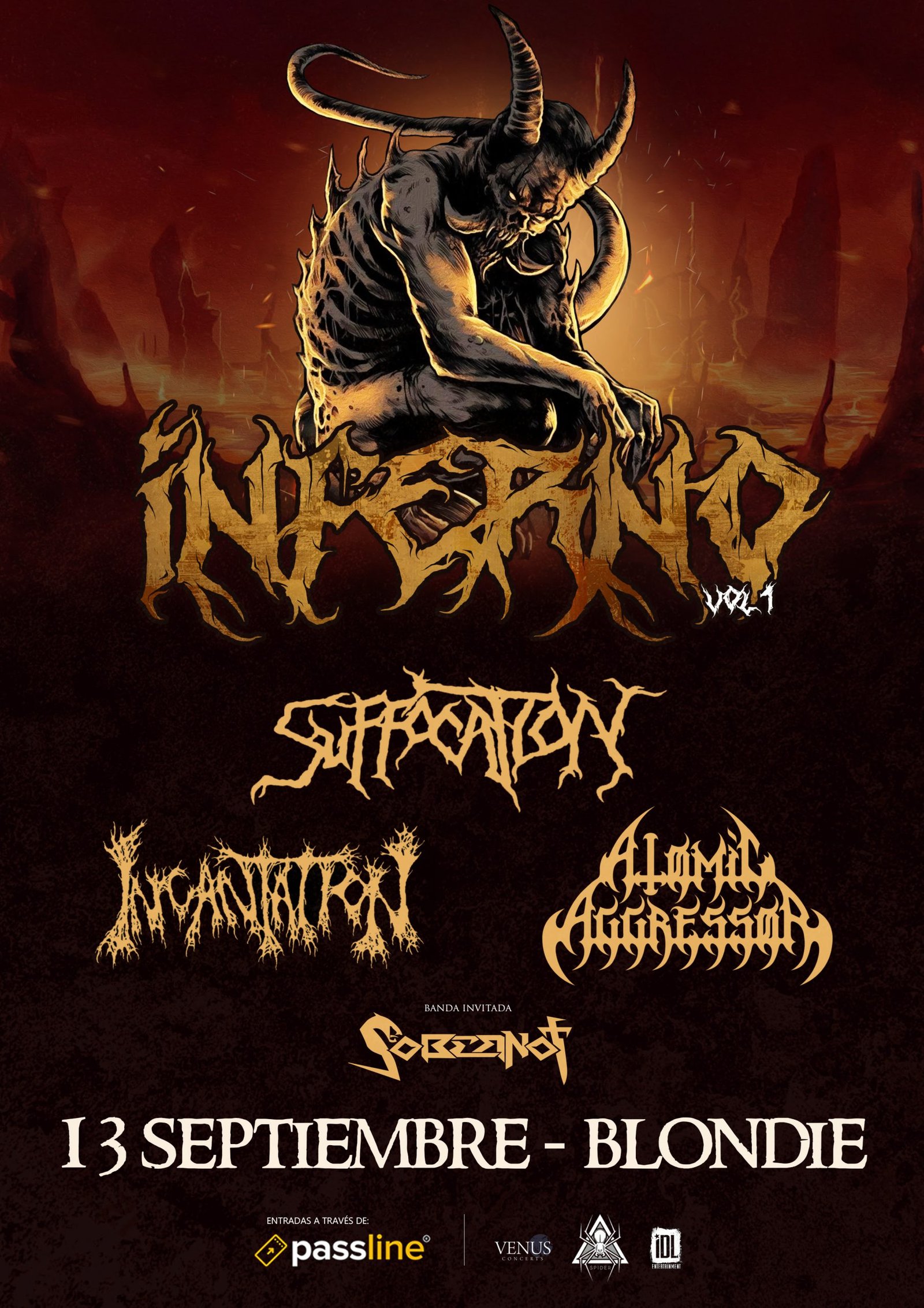Spider Prod se enorgullece en presentar un festival brutal; INFERNO, el cual reunirá lo mejor del Death Metal con leyendas del género como Suffocation e Incantation.