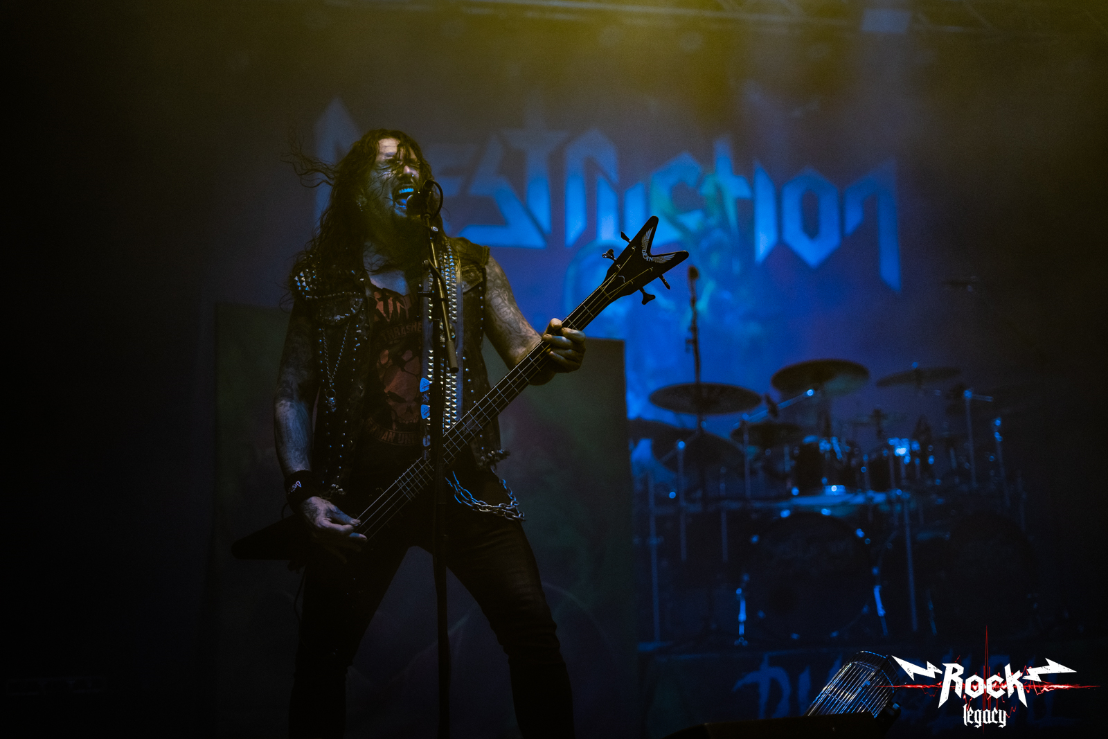 La primera aparición fue de Randy Black, el baterista, quien llegó para comenzar la prueba de sonido y el público reaccionó rápidamente con una ovación, pero aún no llegaría el momento tan ansiado, las pruebas tenían que continuar por un rato más. Y luego de algunos minutos se hizo ver el resto de la banda, comenzando puntuales con el horario puesto en la programación: 21:00 horas. Su gloriosa entrada partió con “Diabolical”, el tema más característico y que da nombre al disco que se está promocionando en esta gira, empezando con todo el power y cumpliendo con las expectativas de un público que no esperaba menos. El segundo tema “Death trap”, del primer álbum Infernal Overkill mantuvo a la gente bastante energética, sabiendo que se vendría una ola de los temas más queridos por los seguidores. Y así fue, llegando el turno de “Nailed to the Cross”, uno de los clásicos más escuchados de la banda teutona que empezó a enloquecer a los fans coreando la canción del álbum lanzado en el 2001, The antichrist.