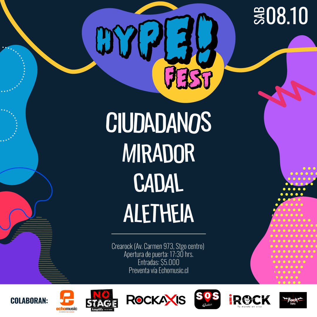 “HYPE FEST” realizara su primera versión. Este 08 de octubre y trae toda la euforia de la nueva escena musical local, un cartel con variados estilos pasando por el Post Punk, Grunge y Rock alternativo.