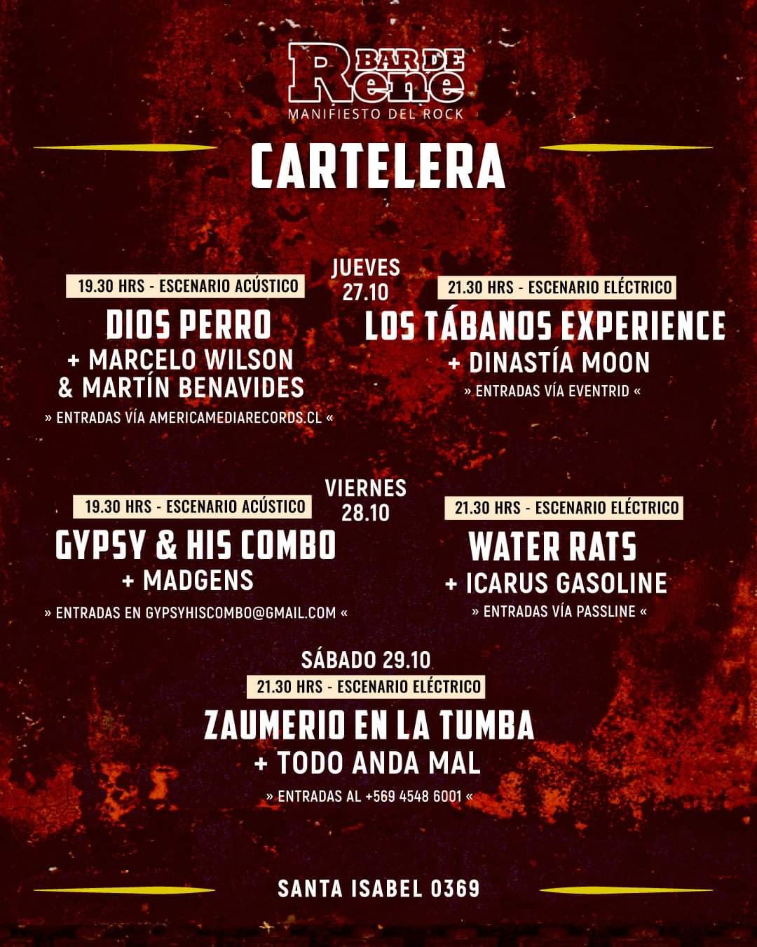 Sábado 29 de octubre escenario eléctrico 21.30 hrs