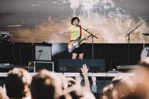 Para ir cerrando los shows con guitarras, se presenta la cantautora japonesa-estadounidense Mitski, quien ha cultivado una carrera exitosa, lo cual se ve de inmediato por la hiper calurosa recepción que tiene. Mitski es efusiva, salta, lanza golpes y se tira al suelo. Es intensa y su música le sigue en profundidad.