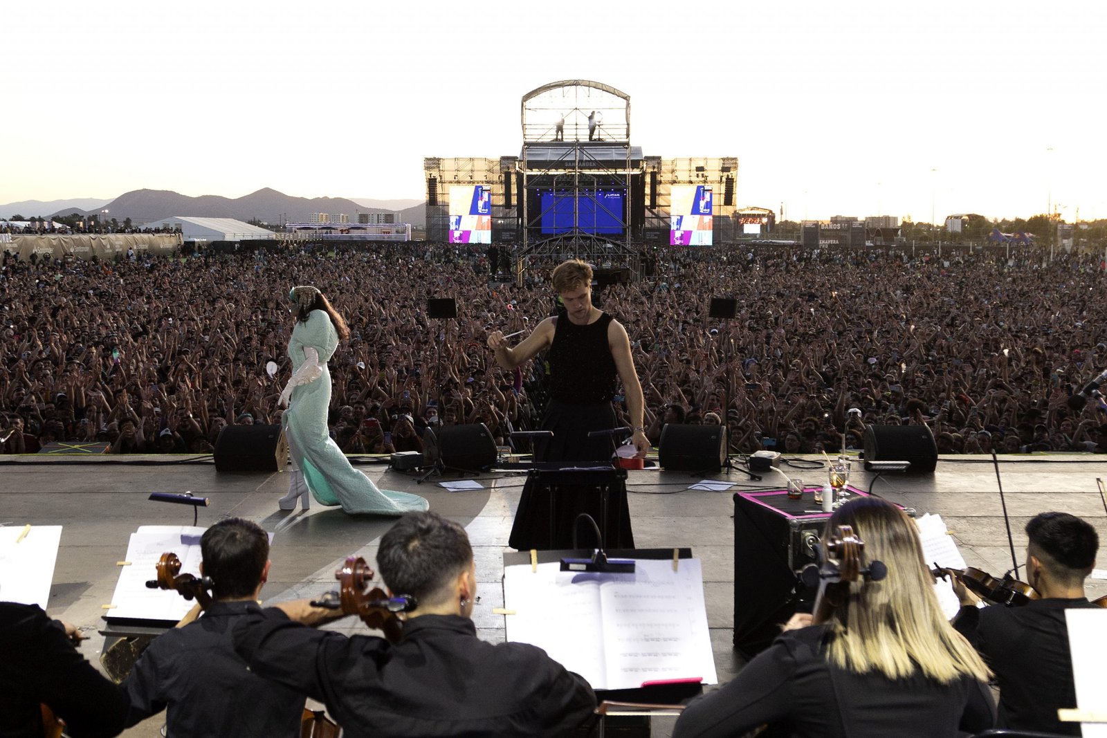 Su banda de acompañamiento es rockera, aun cuando hay momentos de sonidos de sintetizador y la protagonista total es la voz. “Washing Machine Heart” fue, como hemos visto en distintos artistas, un fenómeno de Tik Tok, y la gente la canta efusivamente, con una emoción que pocas veces se vio durante la tarde. Impresionante la recepción, en un atardecer que iba dejando las estelas de un festival histórico.