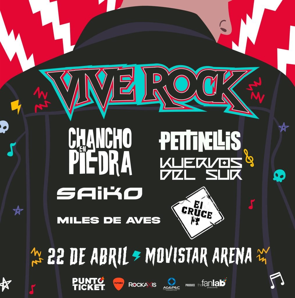Lo mejor del rock nacional se hará presente en la primera edición de Vive Rock Festival. El imperdible encuentro se realizará el sábado 22 de abril en el Movistar Arena con un line up compuesto por Chancho en Piedra -antes de su receso indefinido-, Pettinellis, Saiko y Kuervos del Sur, a los que ahora se suman las destacadas bandas El Cruce y Miles de Aves. Entradas disponibles en PuntoTicket.