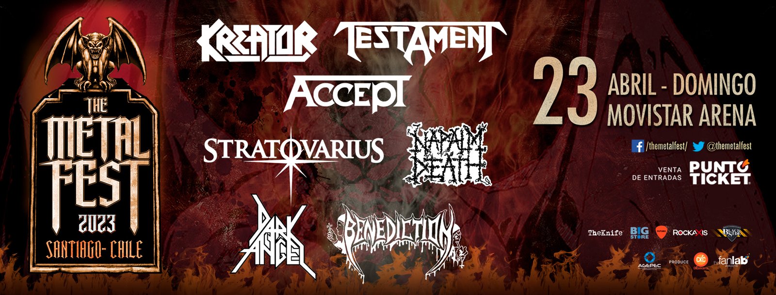 Este domingo 23 de abril, el Movistar Arena será testigo de un espectáculo inolvidable, ya que las mejores bandas de metal de todos los tiempos se reunirán en el esperado regreso de The Metal Fest, después de 9 años de ausencia. Los boletos para la cancha se han agotado por completo, con una audiencia ansiosa de presenciar en vivo a Kreator, Testament, Accept, Stratovarius, Benediction, Finntroll, Dark Angel y Napalm Death. Las bandas nacionales Cabrío, Torturer, Recrucide, Enigma y Undercroft.