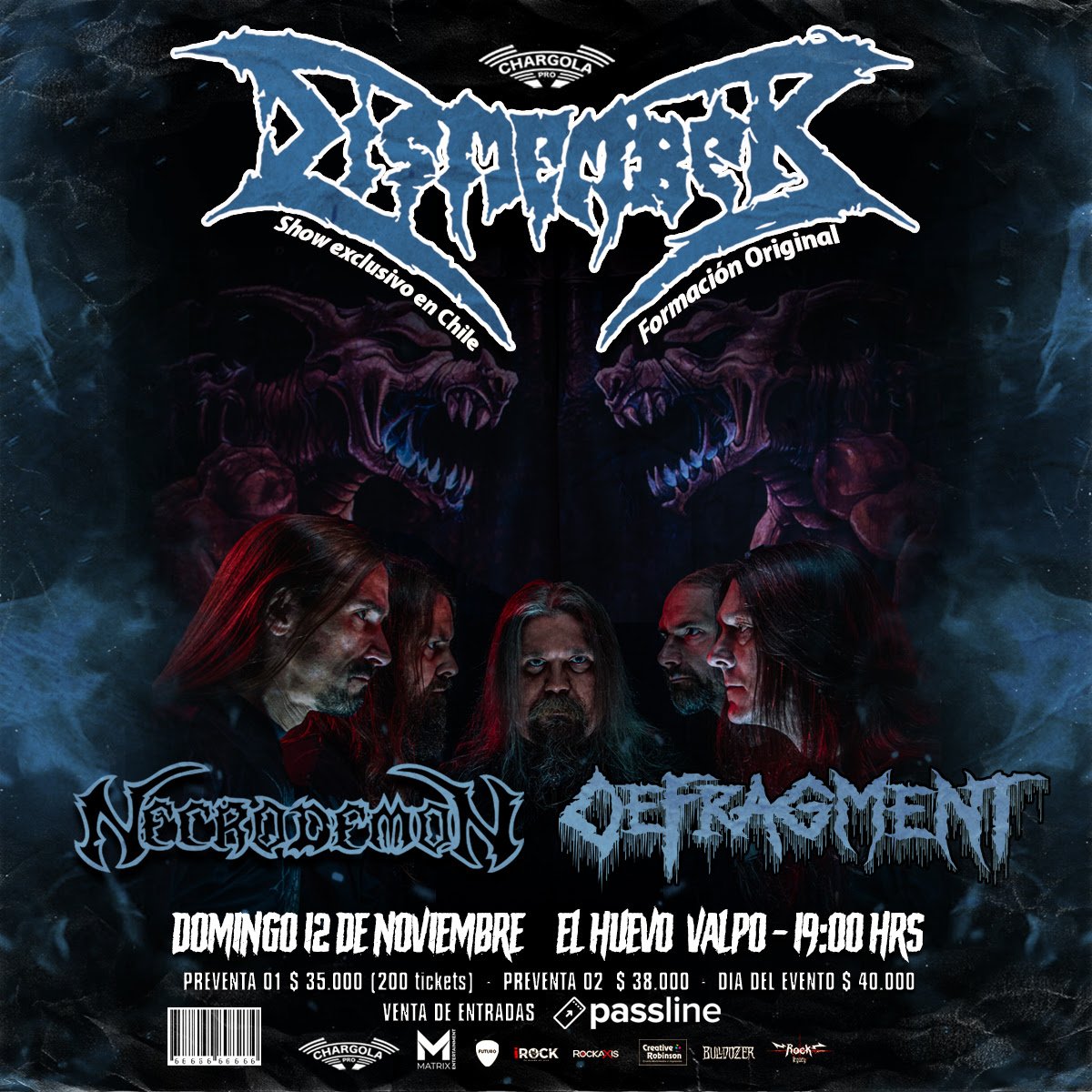 En ambas fechas se contará con el regreso a los escenarios de la clásica banda nacional Necrodemon como invitados especiales. Además, en Santiago se sumara toda la brutalidad de Nefastor y, en Valparaíso, Defragment que traerá lo mejor de su metal extremo a la apertura de esta jornada cargada de death metal.