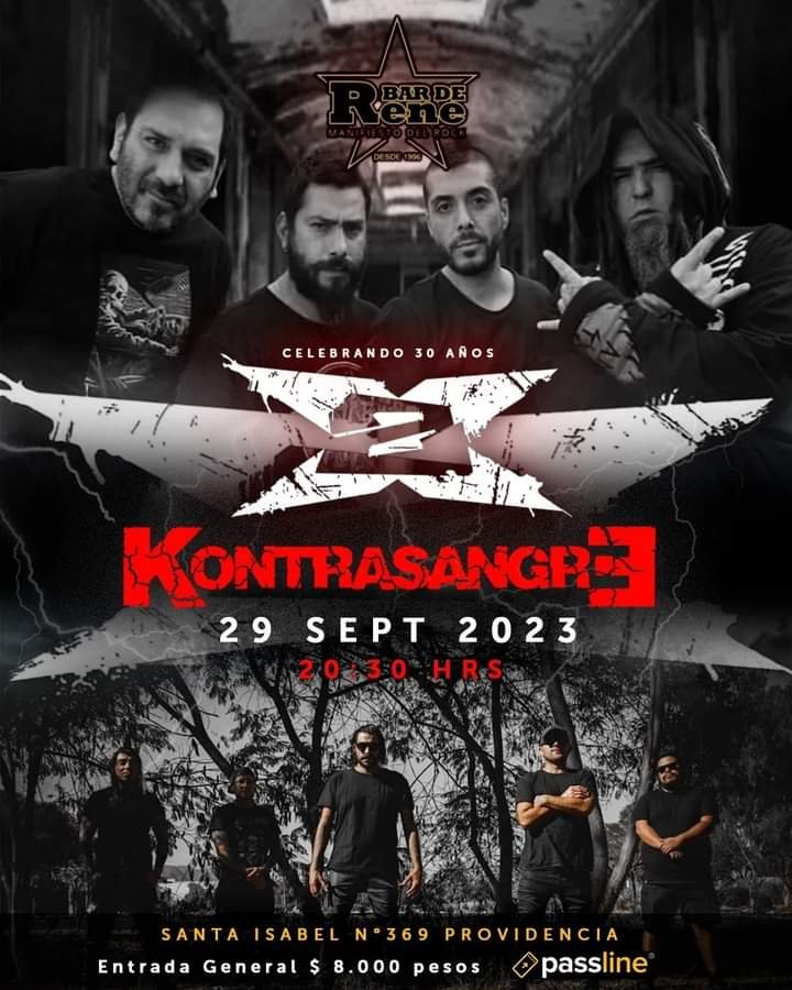 Además, Kontra Sangre compartirá escenario con una de las bandas más reconocidas del género en Chile como lo es 2X, quienes liderados por Alex de la Fuente, se encuentran celebrando el aniversario de su disco “Pateando Cráneos” y que tocarán en su totalidad