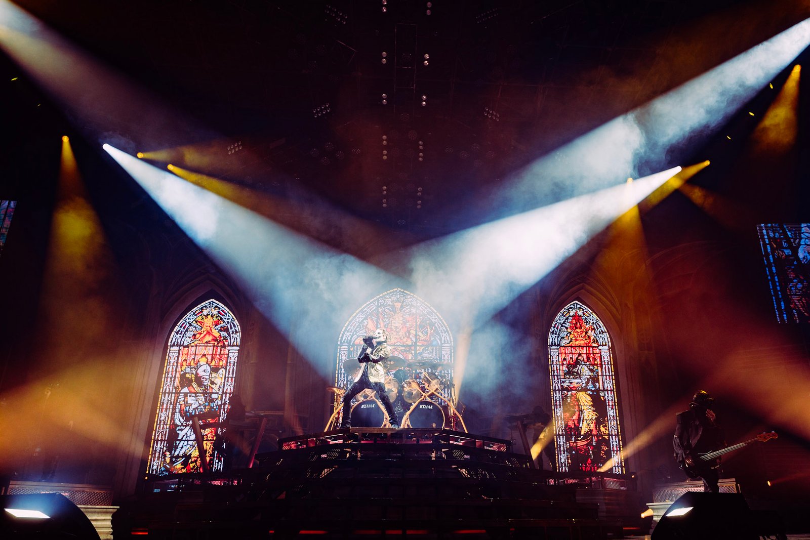 A las 21:00 pm, el público repleto de fanáticos ansiosos presenció la apertura de Ghost con “Kaisarion“. Cada canción que siguió fue un viaje inolvidable, con elementos visuales y escénicos sorprendentes que sólo esta banda podría ofrecer. El Papa Emeritus IV sorprendio con su cambio de atuendo canción a canción, deleitándonos con chaquetas brillantes doradas, azules y rojas, además de su investidura papal como ya la conocemos de color negro con hilos de oro con calaveras y cruces al reves.