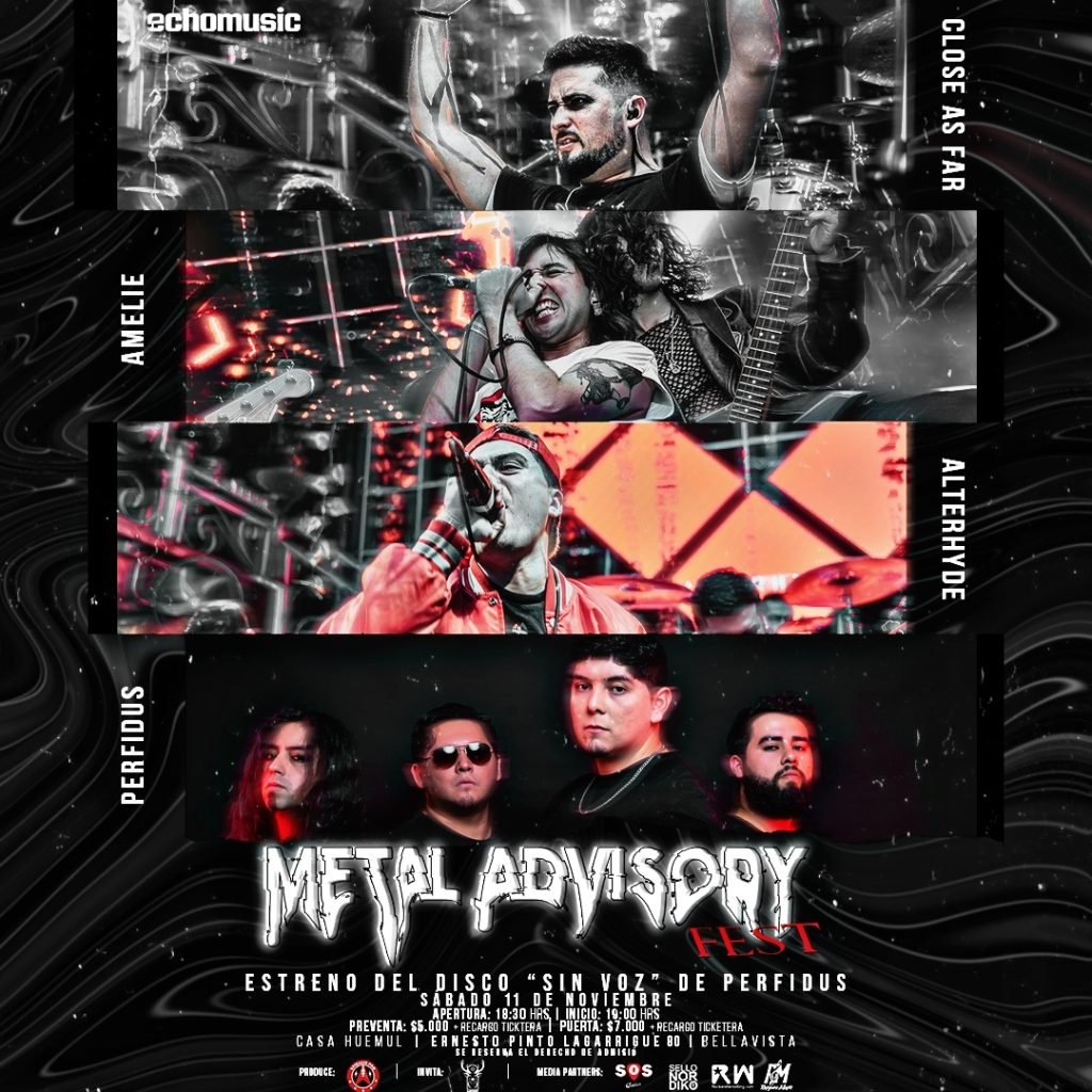La escena del metal en Chile se prepara para una noche de puro poder con el esperado “Metal Advisory Fest” que reunirá a Close As Far, Amelie, Alterhyde, y Perfidus, un evento que promete sacudir los cimientos de Casa Huemul este sábado 11 de noviembre a partir de las 18:30 hrs.