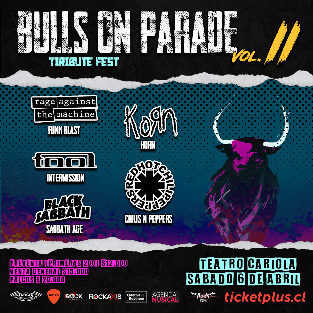 Las agrupaciones que esta vez se encargarán de encender el escenario del Teatro Cariola serán: Funk Blast (tributo a Rage Against the Machine), Intermission (tributo a Tool), Sabbath Age (tributo a Black Sabbath), Horn (tributo a Korn) y Chilis N’ Peppers (tributo a Red Hot Chili Peppers), cada una emulará los mayores éxitos de cada una de las bandas a homenajear, por lo que, sin duda, esta extensa fiesta se viene imperdible.