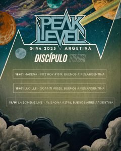 Vale destacar que Peak Level viene de haber lanzado “Discípulo” en noviembre de 2023, track que refleja el relato de un padre a su hijo en el largo viaje de la vida, y en diciembre de 2023 liberaron su primer Live Session “Echoes of the past”, grabado en Variable Records y ya disponible en Youtube y Spotify.