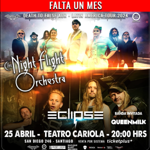 Recuerda que aún hay entradas disponibles para este tremendo show de Eclipse, The Night Flight Orchestra y los chilenos QueenMilk, el próximo 25 de abril en el Teatro Cariola. Puedes conseguir la tuya aquí.