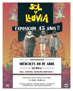 Como parte de las actividades de conmemoración de sus 45 añosSol y Lluvia ofrecerá al público una exposición donde darán cuenta de su legado como una de las bandas más importantes de la música chilena. La inauguración de la muestra, se llevará a cabo el día 10 de abril a las 12:00 horas en el Hall Central de la Estación Mapocho, con la presencia de su líder y vocalista Amaro Labra, los exintegrantes y fundadores, Charles Labra y Jonny Labra, y los actuales miembros de la agrupación.
