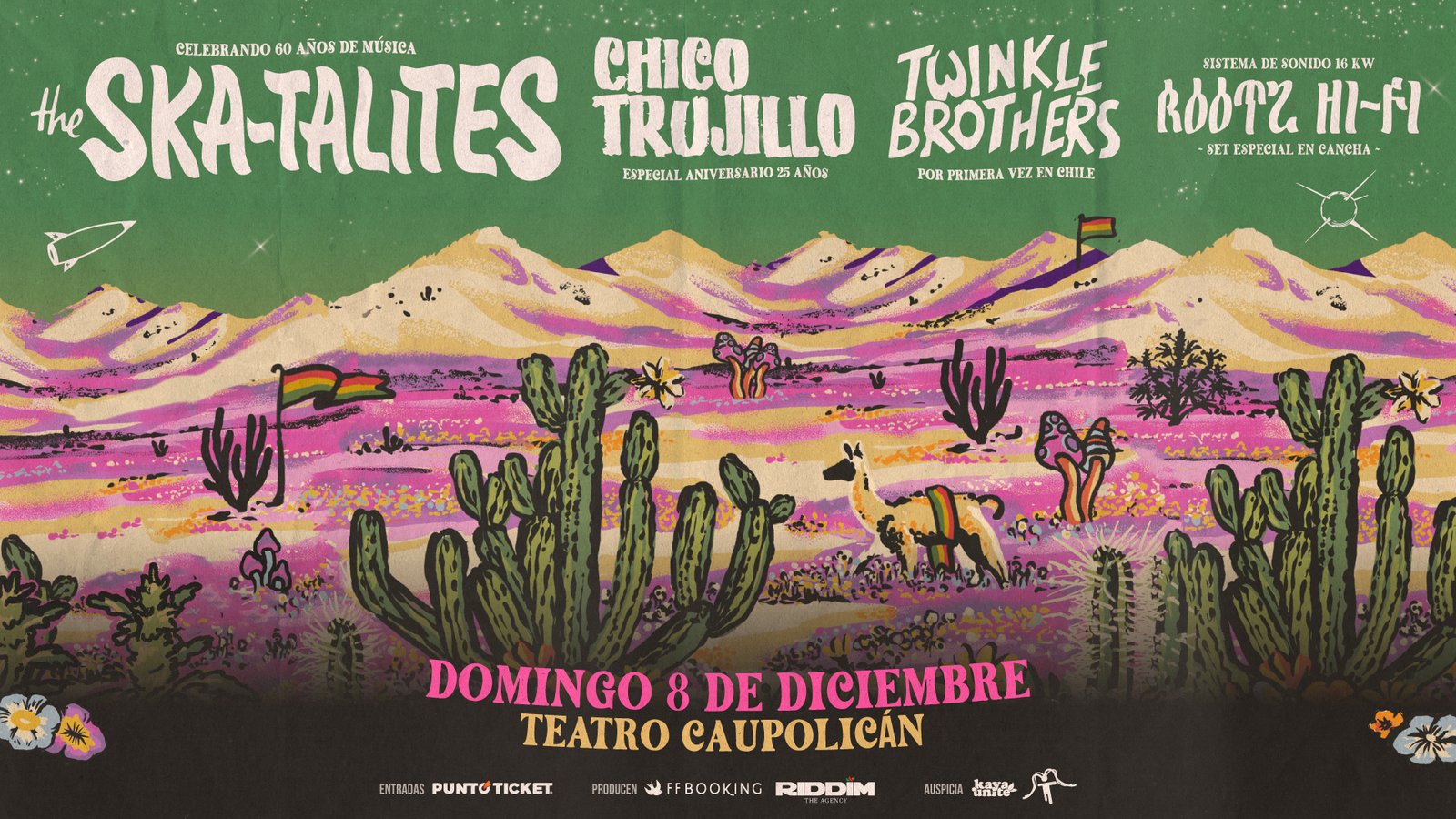 Por su parte, Chico Trujillo también confirmó su equipo estelar para esta noche, donde el carismático Aldo “Macha” Asenjo repasará los grandes éxitos que ha cosechado con esta agrupación como “La medallita“, “Loca” o “Déjame decirte algo” en sus 25 años de vida musical, canciones que han nacido gracias a la mezcla de música tropical con otros sonidos como el ska y el reggae. El grupo autor de éxitos como “Fuera de mi vida” ya compartió escenario con Skatalites en 2022 en un inolvidable show realizado en la ciudad de Buenos Aires.